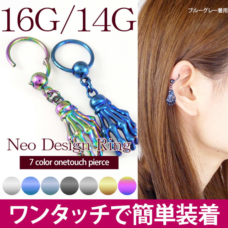 ボディピアス ワンタッチで装着 ネオゴーストハンドリング 16G 14G ボディーピアス 軟骨ピアス ヘリックス トラガス
